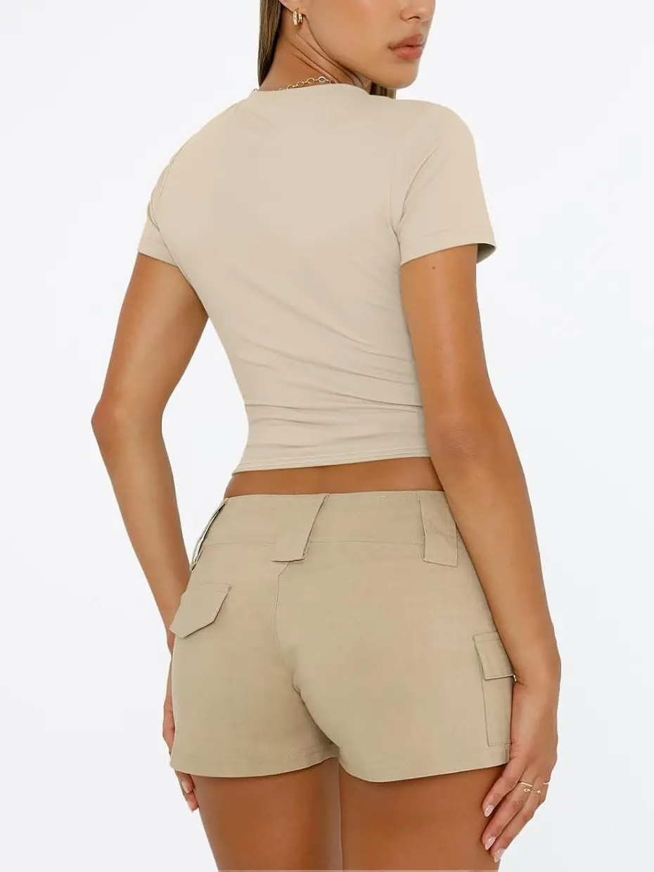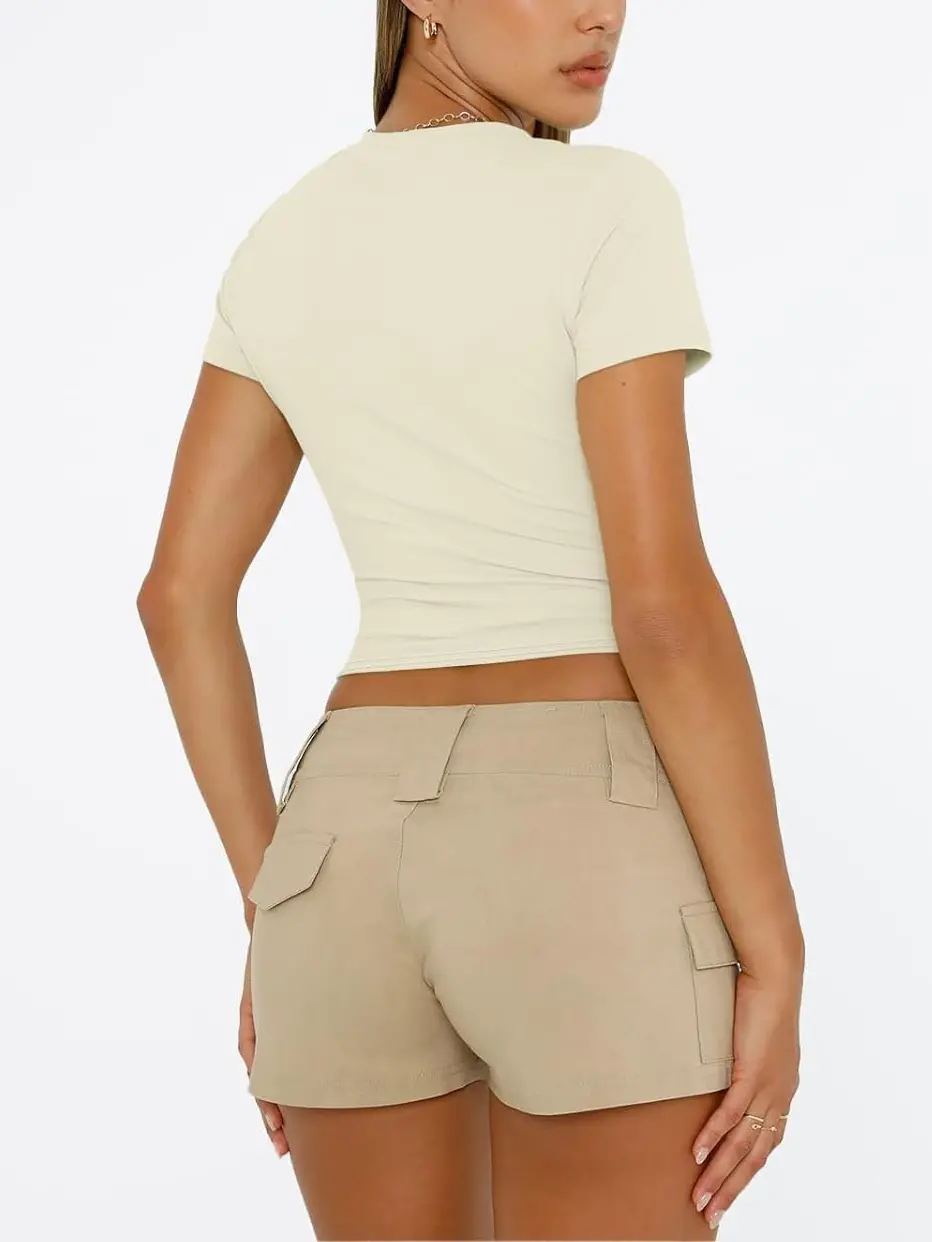 • Wearing: This basic crop top is a must-have for summer 2024. It pairs perfectly with shorts, jeans, skirts, yoga pants, or cargo pants for a fashion-forward Y2K look.