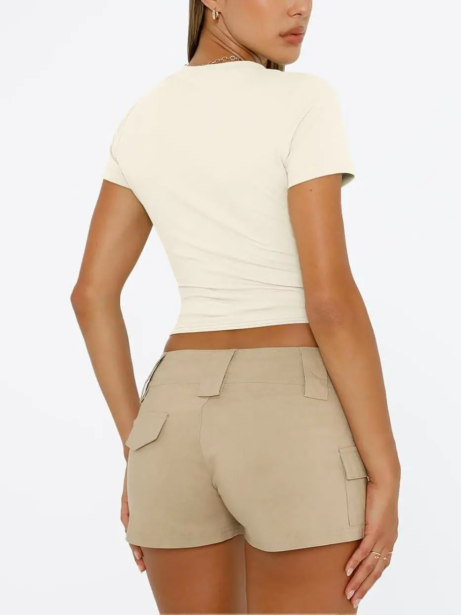 • Design: This top features a cute, slim-fitted, and casual style with a crew neck and short sleeves. It comes in both cropped and regular styles, giving you the option to wear it as a regular top or fold it up for a trendy crop top look.