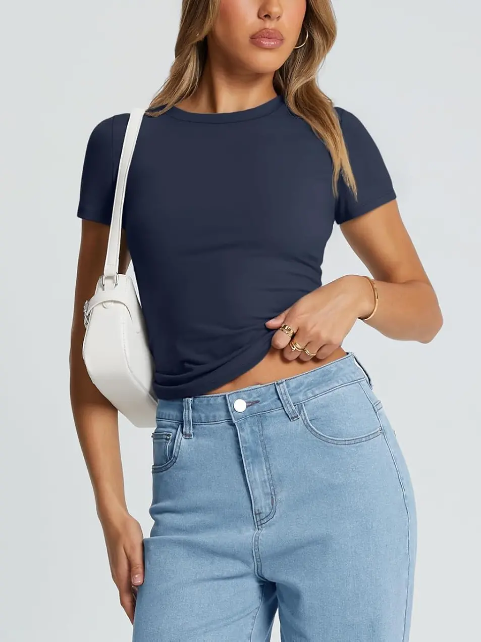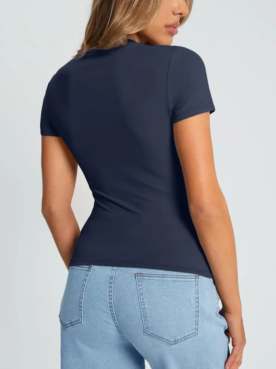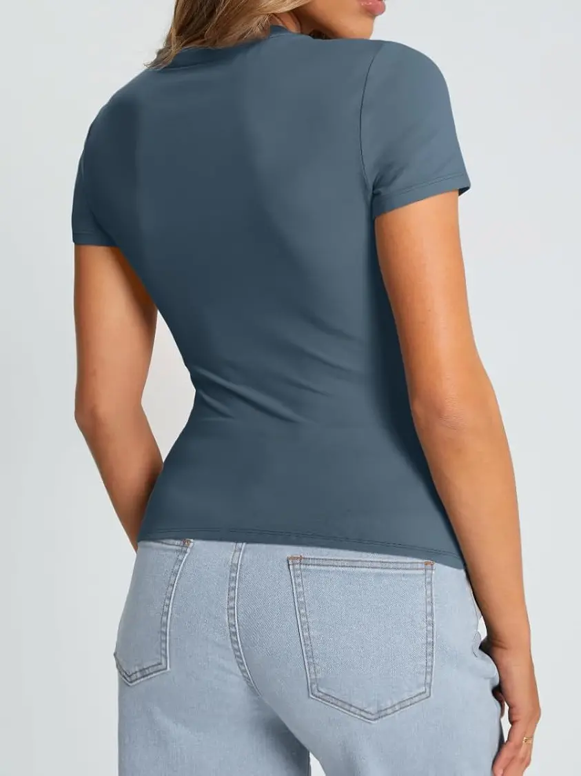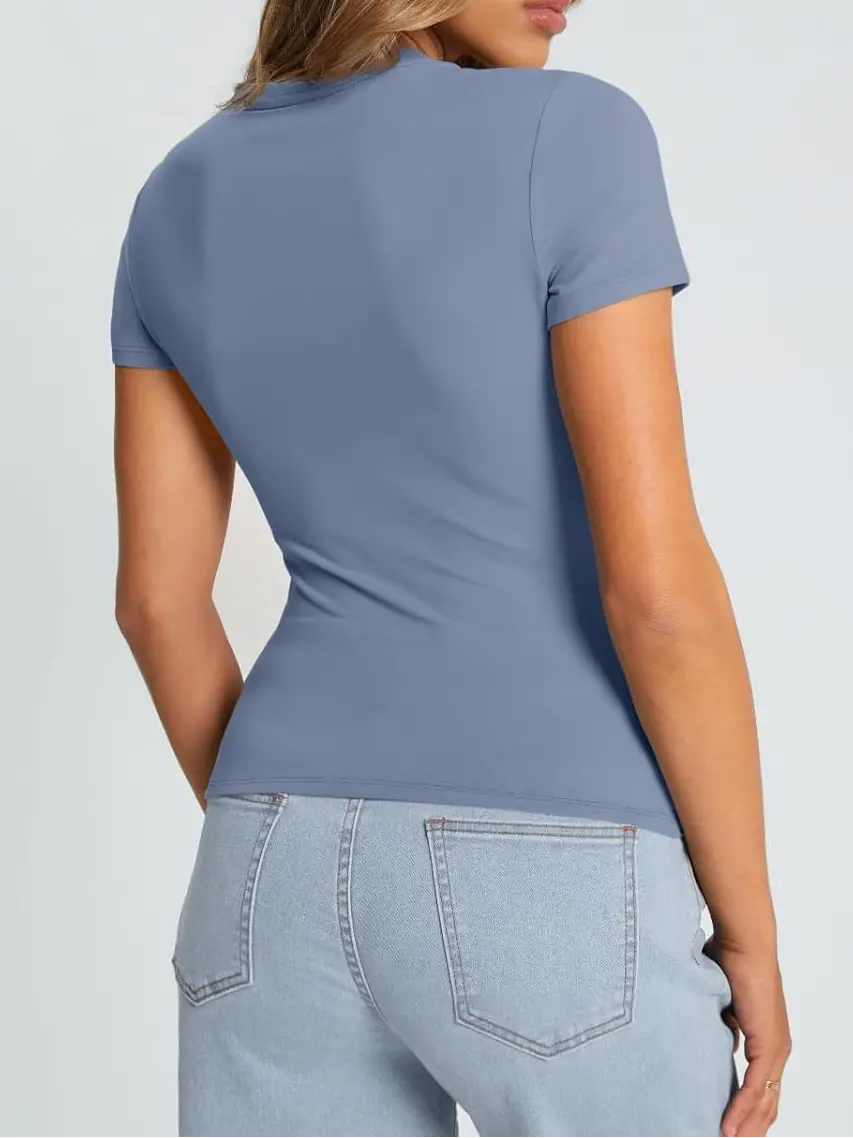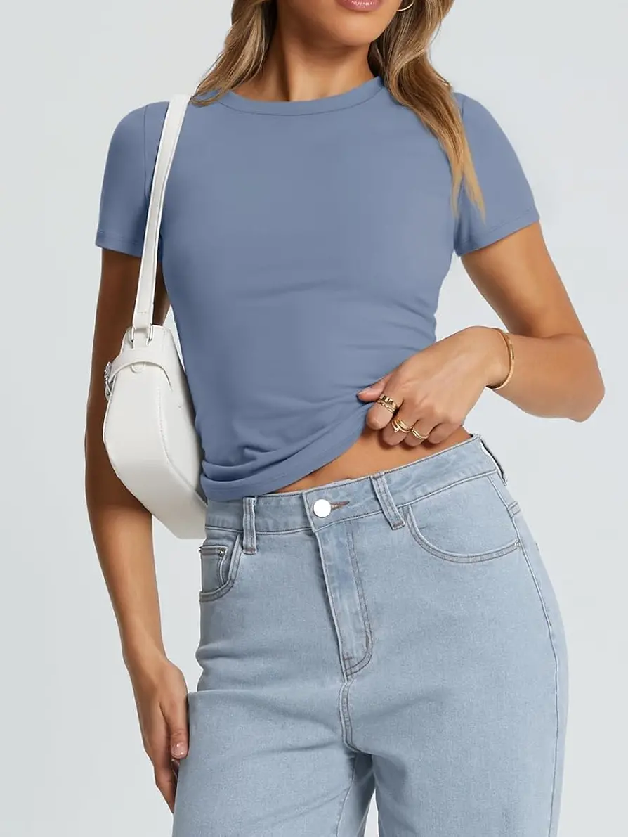 • Design: This top features a cute, slim-fitted, and casual style with a crew neck and short sleeves. It comes in both cropped and regular styles, giving you the option to wear it as a regular top or fold it up for a trendy crop top look.