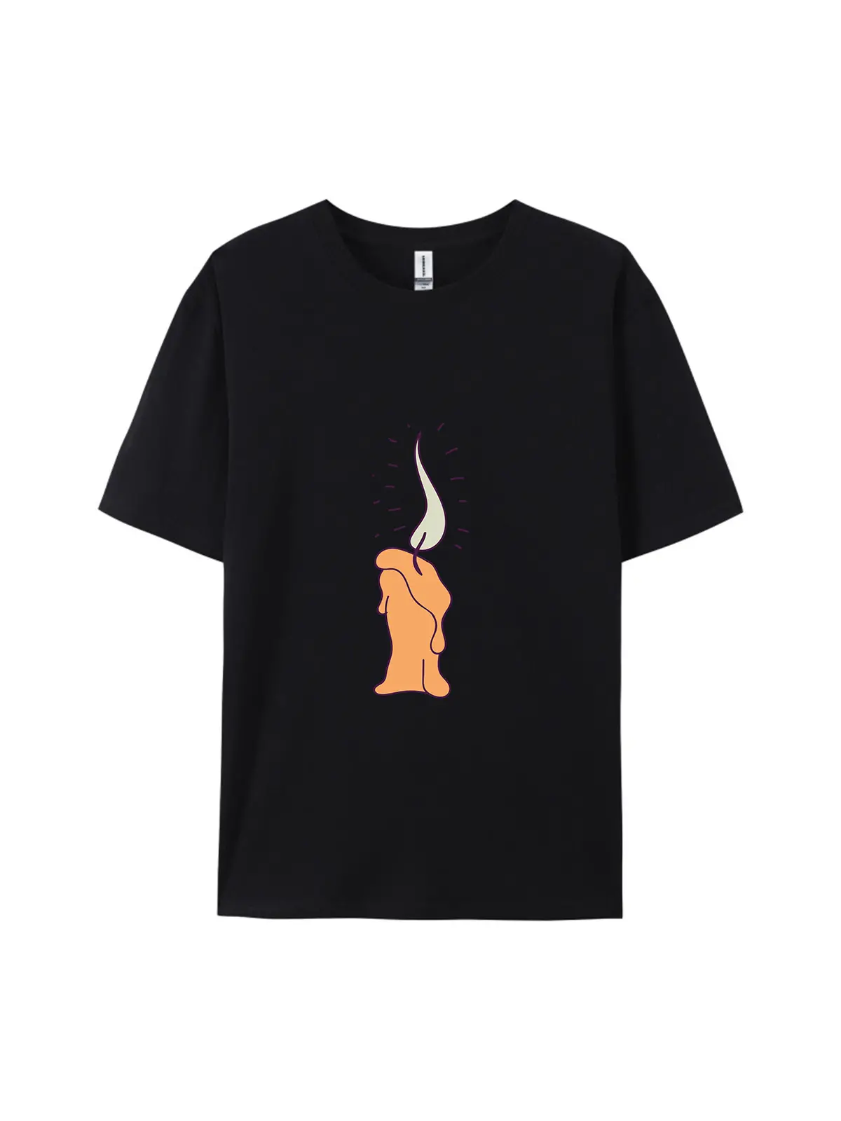 Cartoon Burning Candle Graphic TeeCartoon Burning Candle Graphic Tee