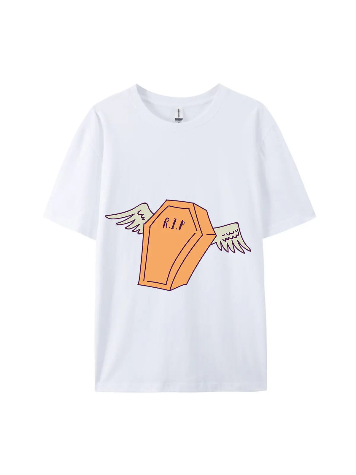 Cartoon Winged R.I.P Coffin Graphic TeeCartoon Winged R.I.P Coffin Graphic Tee