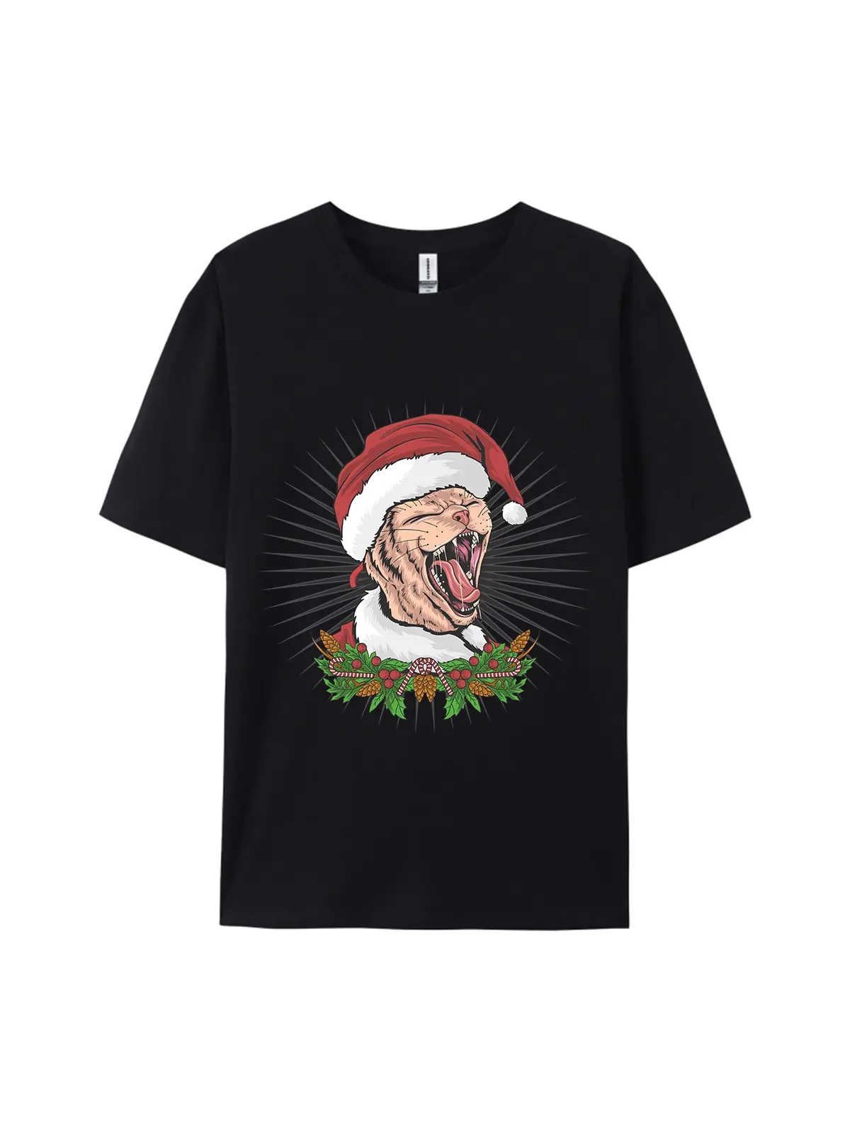 Christmas Cat in Santa Hat Graphic TeeChristmas Cat in Santa Hat Graphic Tee