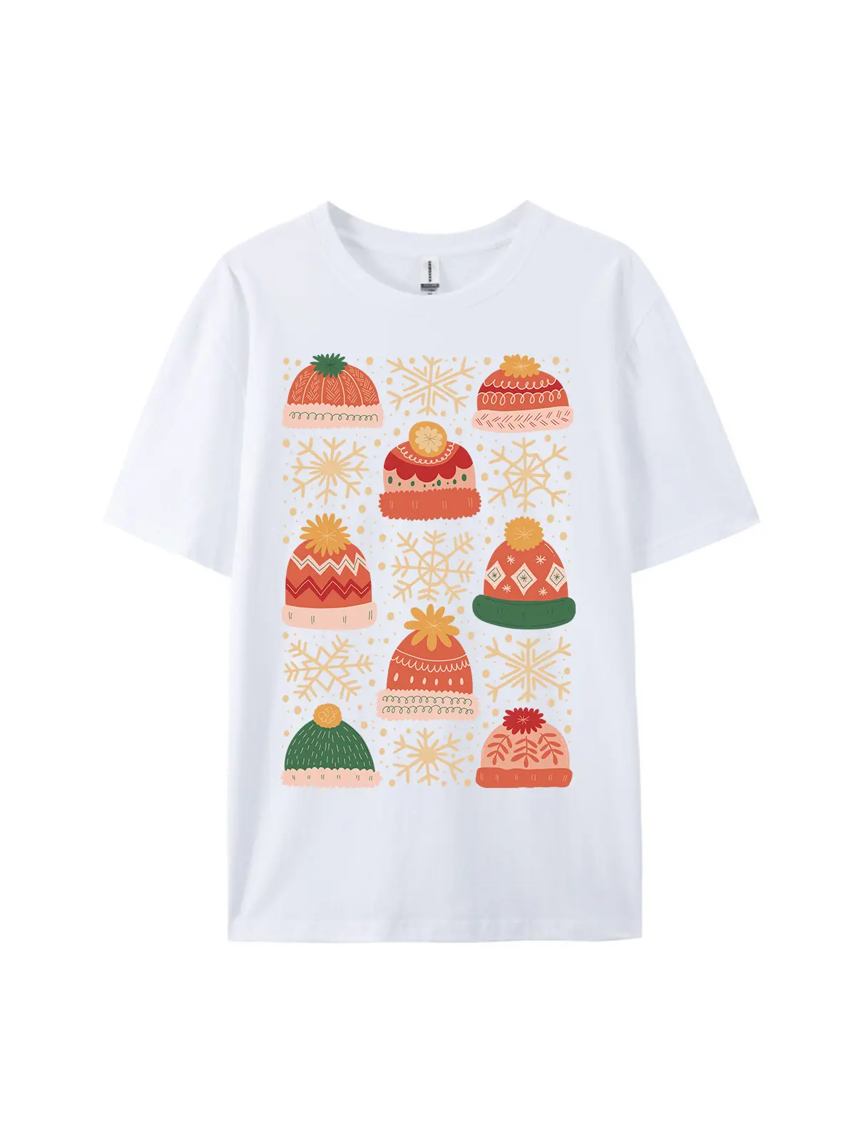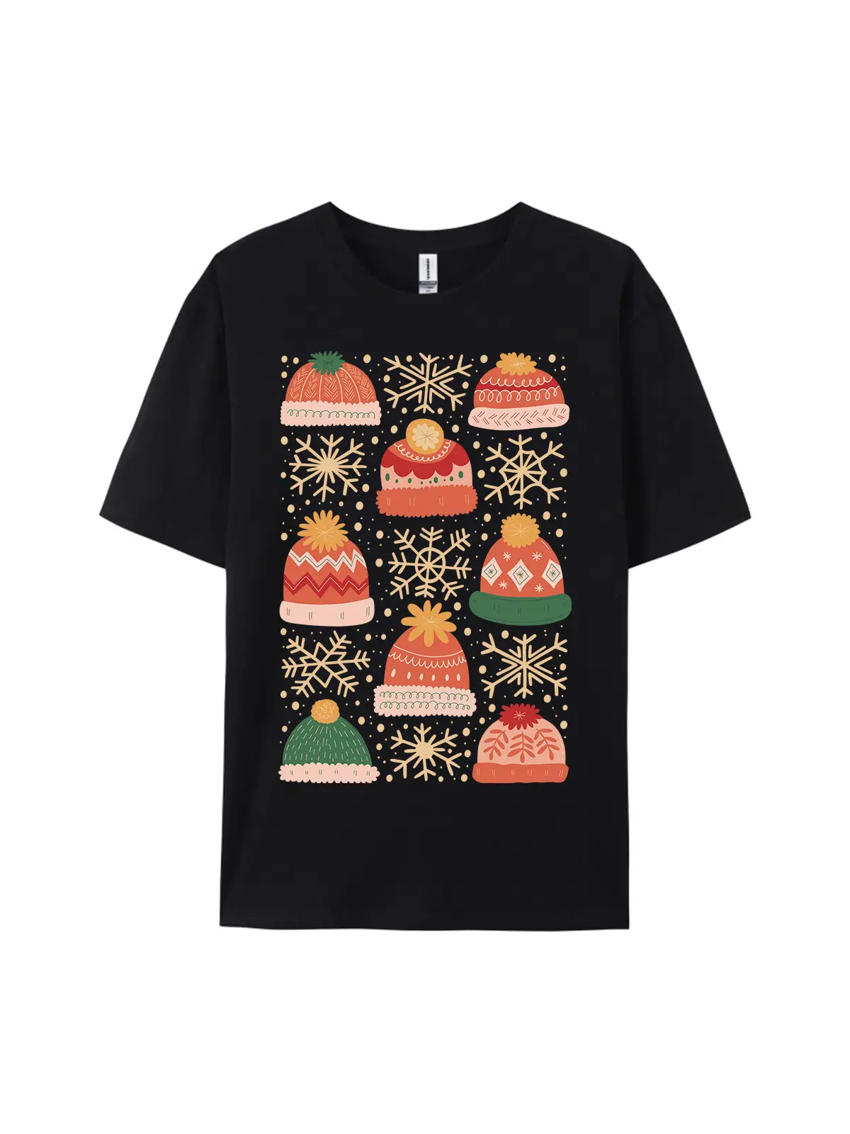 Christmas Hats Snowflake Graphic Tee For Women Men