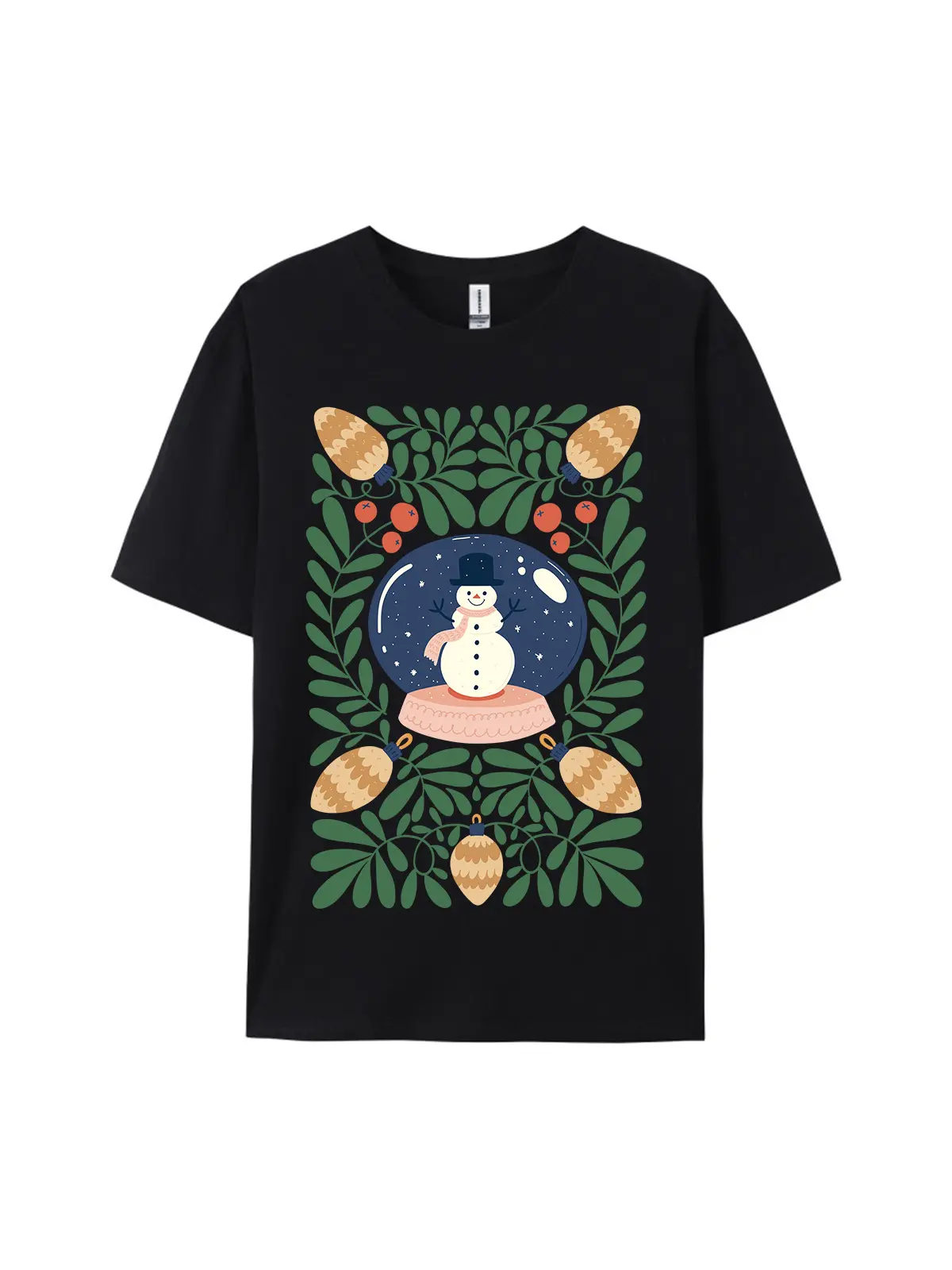 Christmas Snowman Snow Globe Graphic Tee For Women MenChristmas Snowman Snow Globe Graphic Tee For Women Men