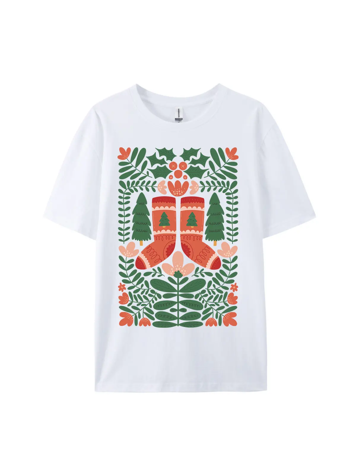 Christmas Socks & Holly Graphic Tee For Women MenChristmas Socks & Holly Graphic Tee For Women Men