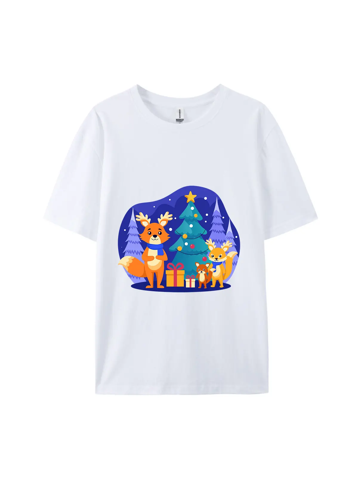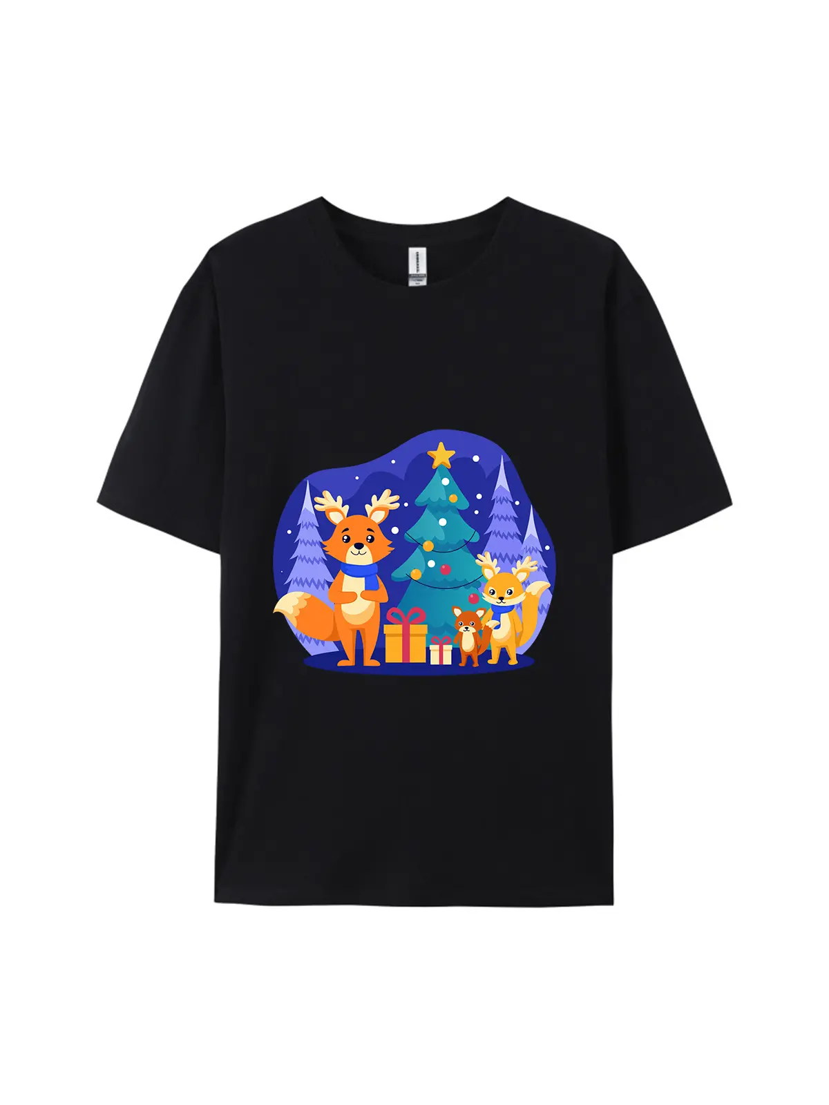 Fox Family Christmas Scene Graphic Tee For Women Men
