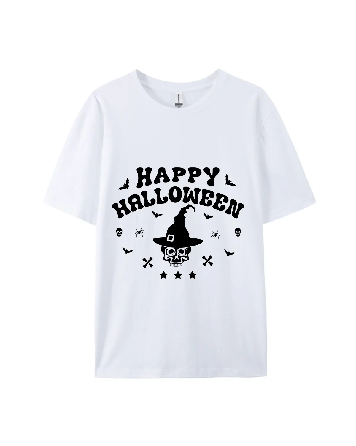 Happy Halloween Skull Witch Hat Graphic TeeHappy Halloween Skull Witch Hat Graphic Tee