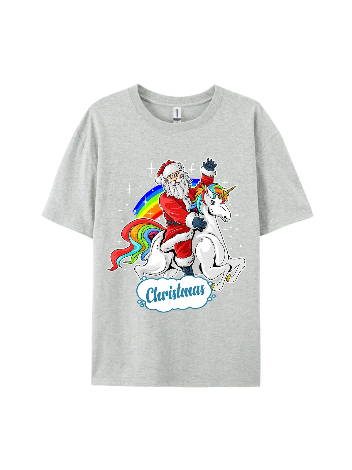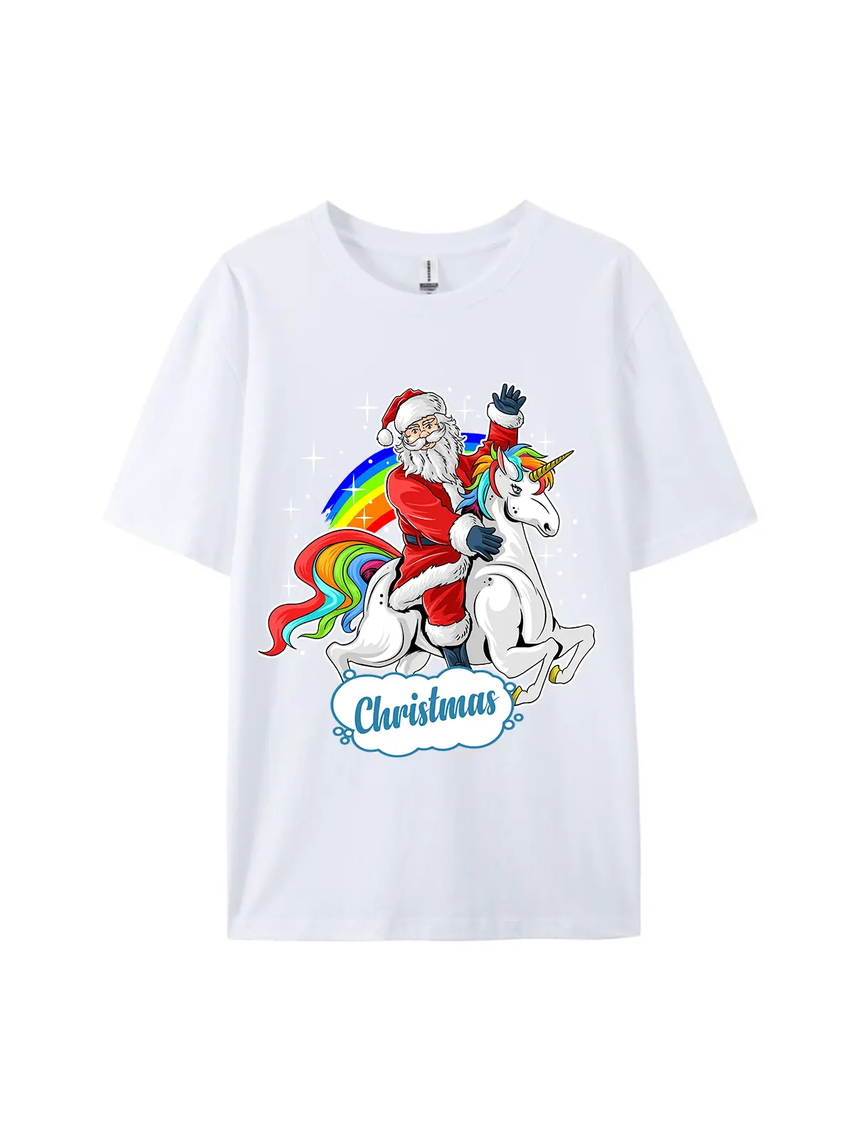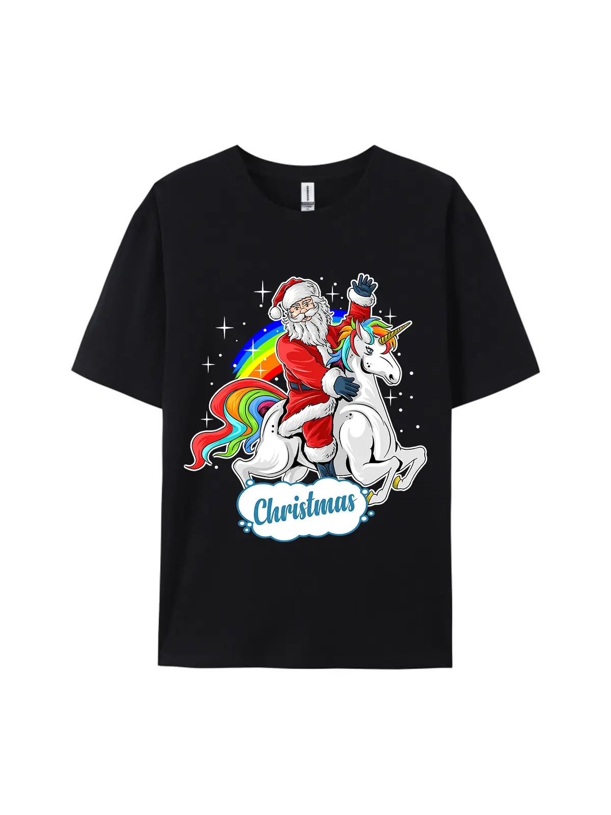 Santa Claus Riding Unicorn Christmas Graphic Tee