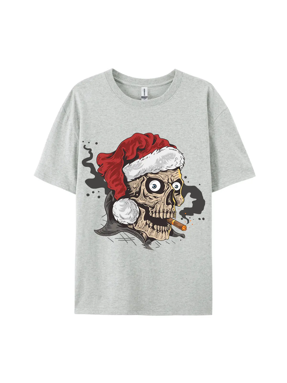 Santa Hat Skull Smoking Cigar Graphic TeeSanta Hat Skull Smoking Cigar Graphic Tee