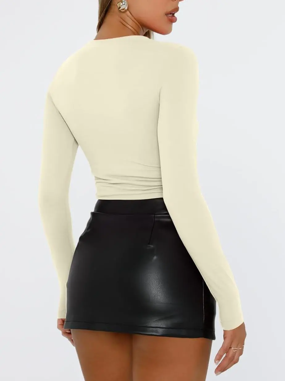 • Y2k Design: Cropped and regular style,you can wear it regularly or fold it up like a crop top.cute,slim fitted,casual style,scoop neck,long sleeve shirts.