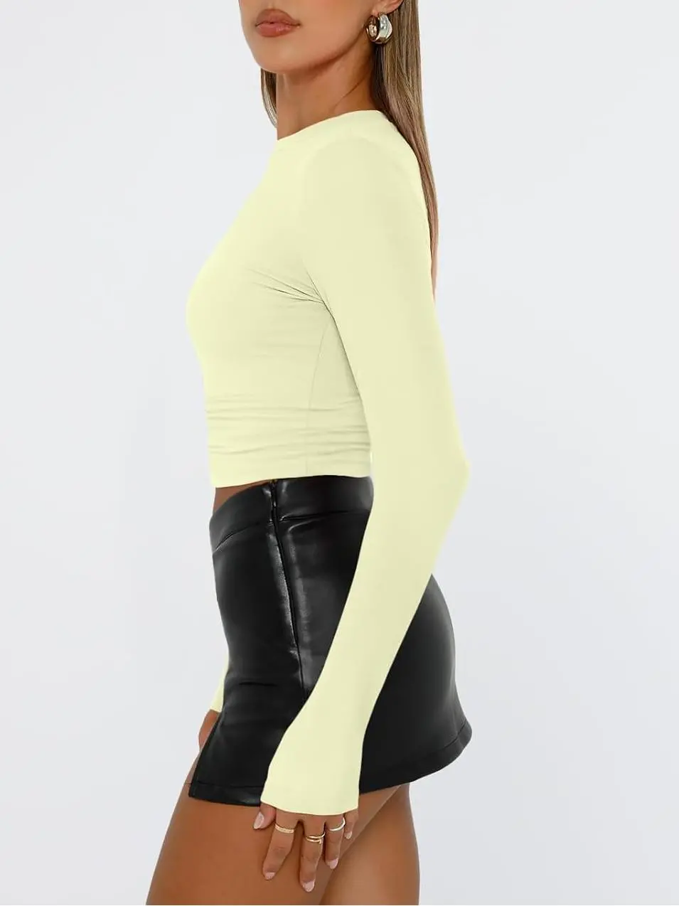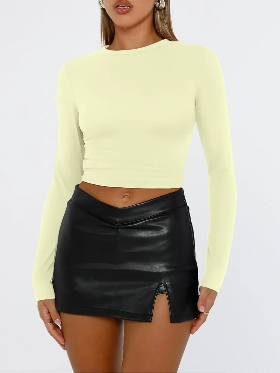• Y2k Design: Cropped and regular style,you can wear it regularly or fold it up like a crop top.cute,slim fitted,casual style,scoop neck,long sleeve shirts.